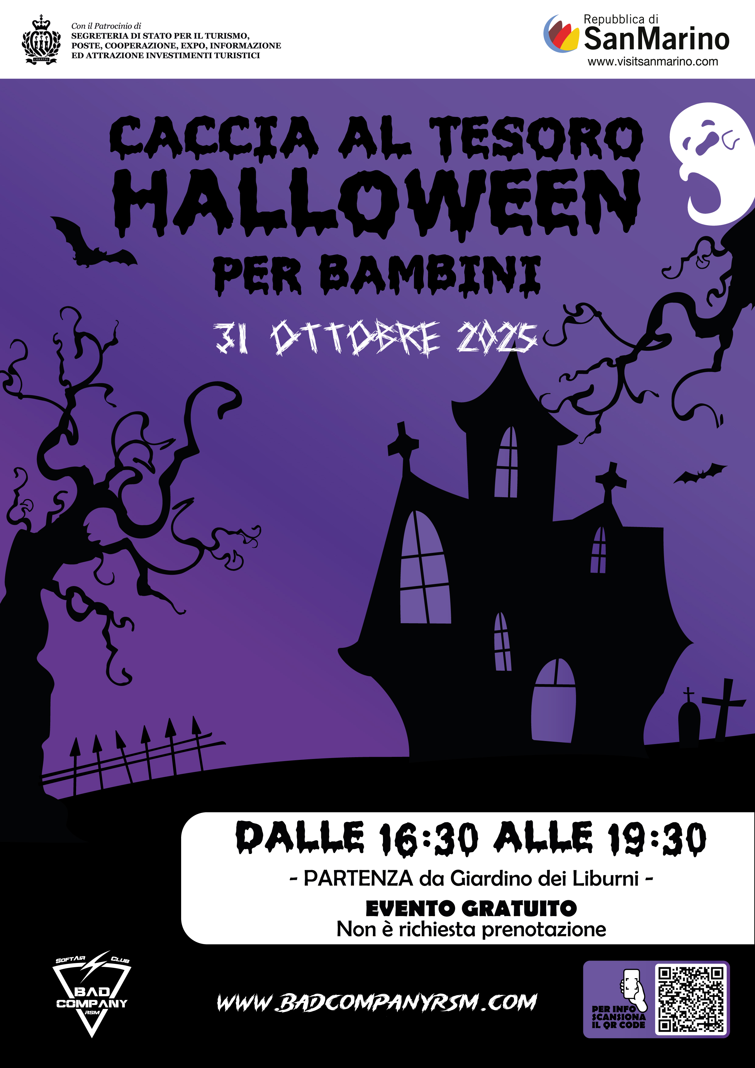 L'appuntamento di Halloween per adulti e bambini è per venerdì pomeriggio 31 ottobre nel Centro Storico di San Marino dalle 16.30 alle 19.30.